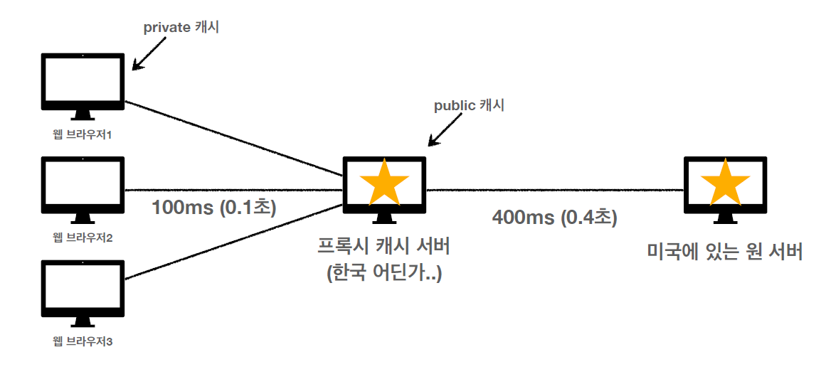 프록시 캐시에는 public한 캐시만 저장할 수 있고, private 와 같은 헤더가 적용되어 있다면