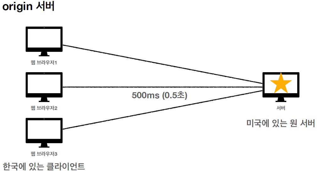 즉 미국에 있는 원 서버에 접근하려면, 다양한 네트워크 계층을 타고 멀리 있는 서버에 접근해야하므로