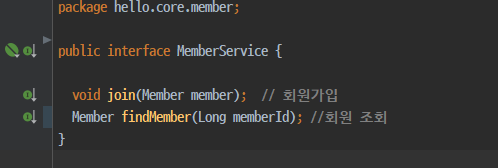 회원 서비스만을 담당할 인터페이스부터 만들어보겠습니다.