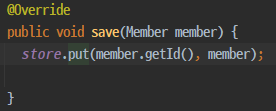 아까 MemberReposioty 인 인터페이스 클래스에서 쓴 save를 여기에서 구현하며 해당 메서드를 재정의하고 있습니다.