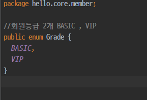 빼놓은 점이 있는데, 회원의 등급인 BASIC, VIP를 설정할 Enum 파일을 만들어야합니다.