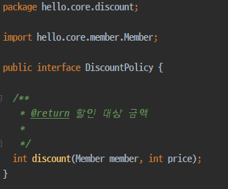 DiscountPolicy 인터페이스를 작성해보았습니다.