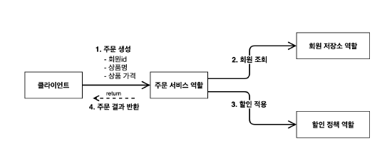 4. 주문 결과 반환 : 주문 서비스는 할인 결과를 포함한 주문 결과를 반환합니다.