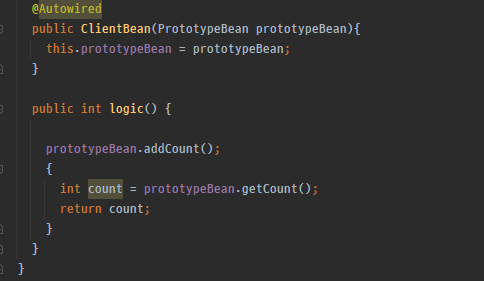 그 후 만약 로직을 호출해서 addCount()를 실행하면 프로토타입 빈의 count 필드가 증가한다.