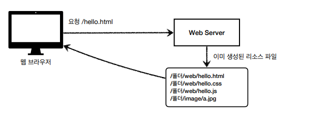 URL로 요청이 들어오면 웹 서버에서는 이미 있는 리소스 파일을 반환해주는 간단한 리소스입니다.