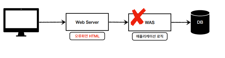그래서 만약 WAS 또는 DB가 죽거나 오류가 생길 경우, 웹 서버에서 오류화면 HTML을 띄어준다.