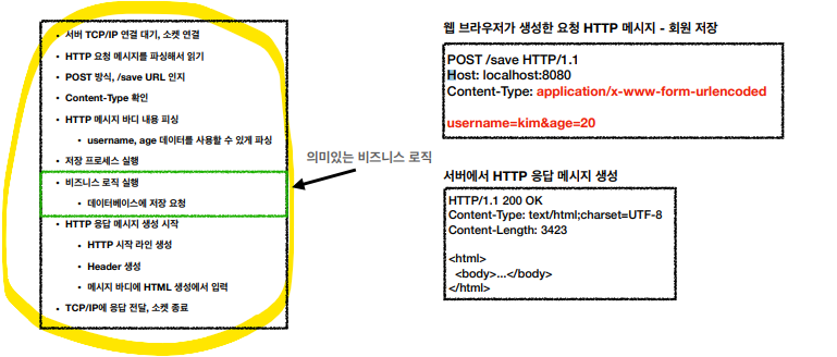 HTTP 요청 메시지를 받으면 POST 인지 Content-Type은 뭔지, 메시지 바디에는 어떤 내용이 담겨서 왔는지,