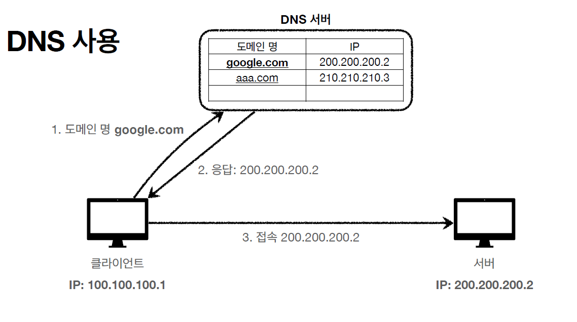 도메인 명 google.com을 입력한다면, DNS서버에 접속하여 도메인과 일치하는 ip주소가 있는지 확인하고