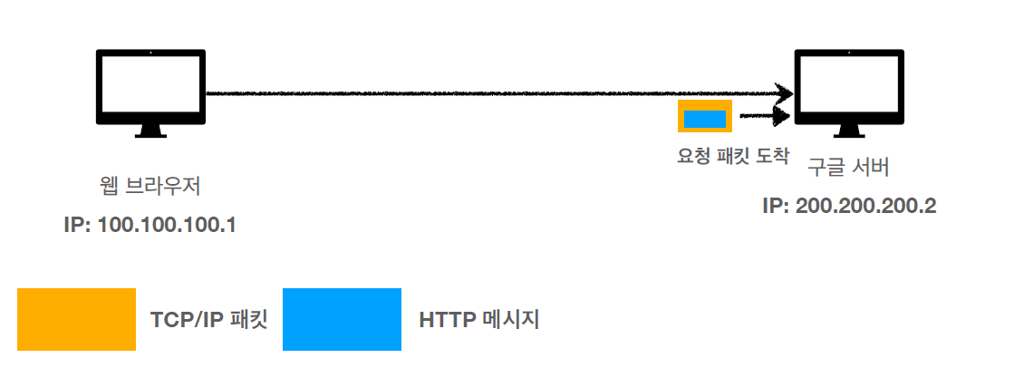 저번 시간에 공부한 프로토콜 4계층을 거쳐, TCP/IP 패킷을 생성하고 전송 데이터에 HTTP 메시지를 넣어